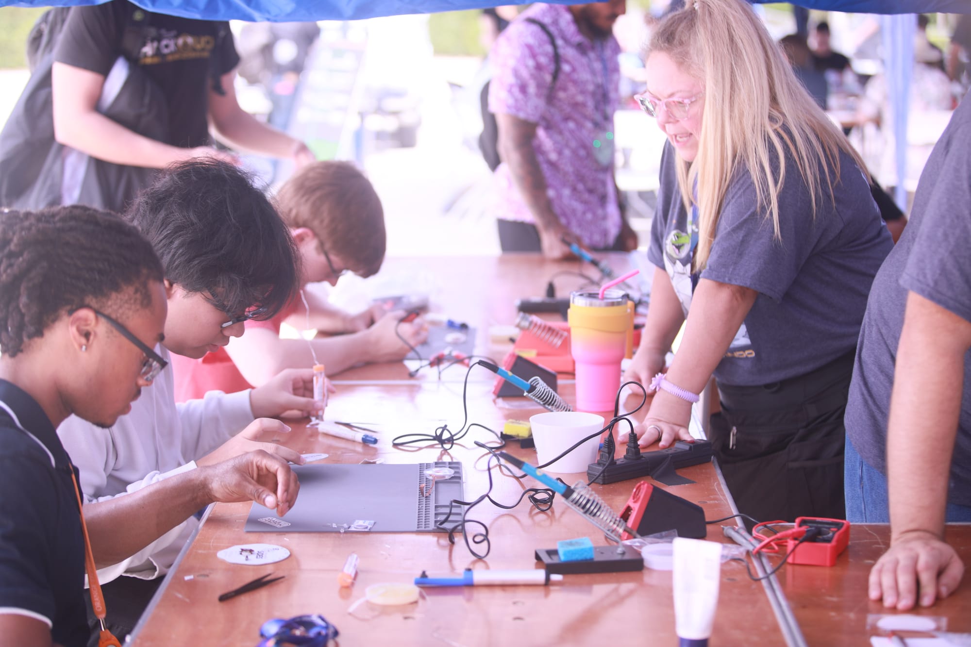 Where I volunteered! Help attendees solder blinking LEDs, badges, and small circuits—even if they’ve never used a soldering iron before.